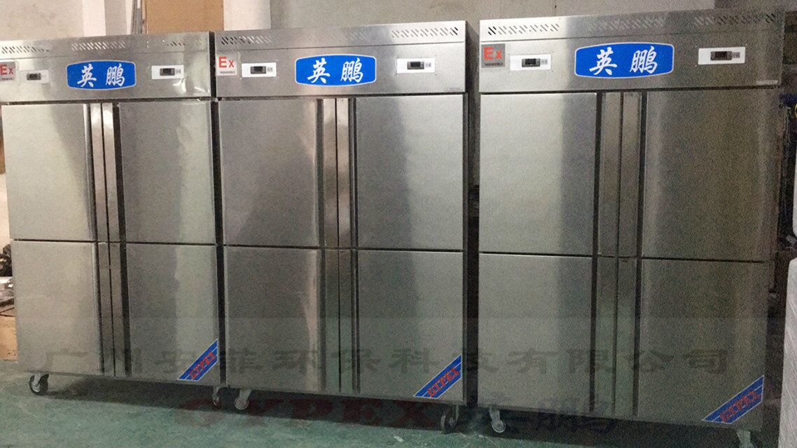 产品特点: 采用的是电子温控系统,电子温控防爆电冰箱是继机械温控防爆电冰箱之后的第二代新产品。电子温控防爆电冰箱与机械温控防爆电冰箱的主要区别在于温度控制器及其电气线路结构的不同,其箱体构造、制冷工作原理大致与机械温控电冰箱相同,在此不再重复介绍。 电子温控不锈钢防爆电冰箱既有直冷式又有间冷式,其控制功能多种多样。除根据冷藏、冷冻室温 度控制压缩机开停外,其能自动显示冷藏、冷冻室的温度,还具有可根据霜层厚度与压缩机工作时间自动除霜,以及过电压保护、自动除臭和语言提示等功能。一般来说,电子温控比机械温控复杂。无论电子控制还是电脑控制的防爆电冰箱,都是模糊控制系统的最新应用,解决了多功能防爆电冰箱的控制问题,然而由于控制复杂也给维修者带来诸多不便。