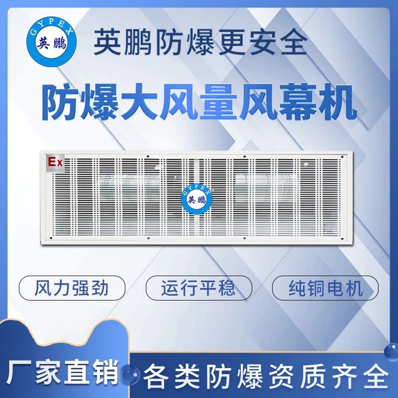 2、组成防爆热风幕由离心风机、上风斗、下风斗、换热器等部件组成。3、隔热功能风幕机使得如化工厂、化学冷库这样的顾客经常出入的地方需要不断开关门。这样能以60-80%的效率来保持室内的冷、暖的空气温度。而只会允许有微小的温度变化。4分类多分热水型、蒸汽型、冷热水型三种;分明装、暗装二类。5定做可以定做特殊长度、特殊参数的产品。